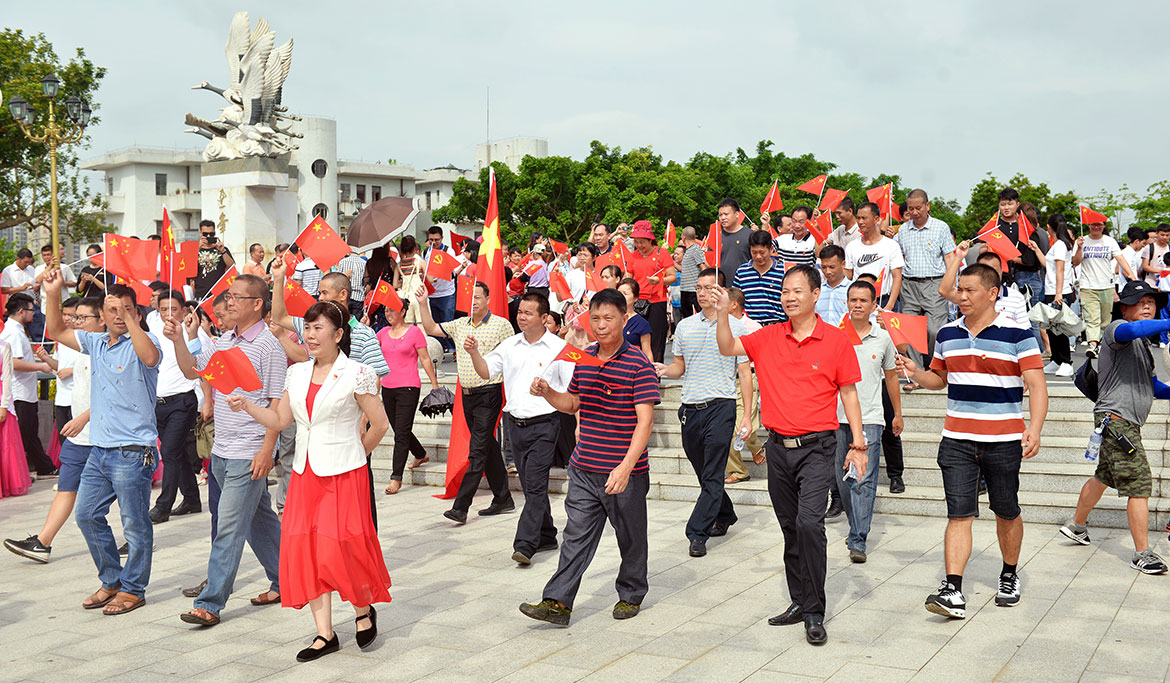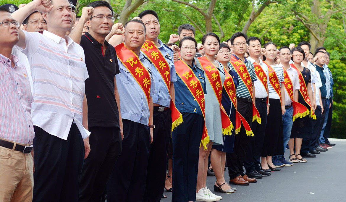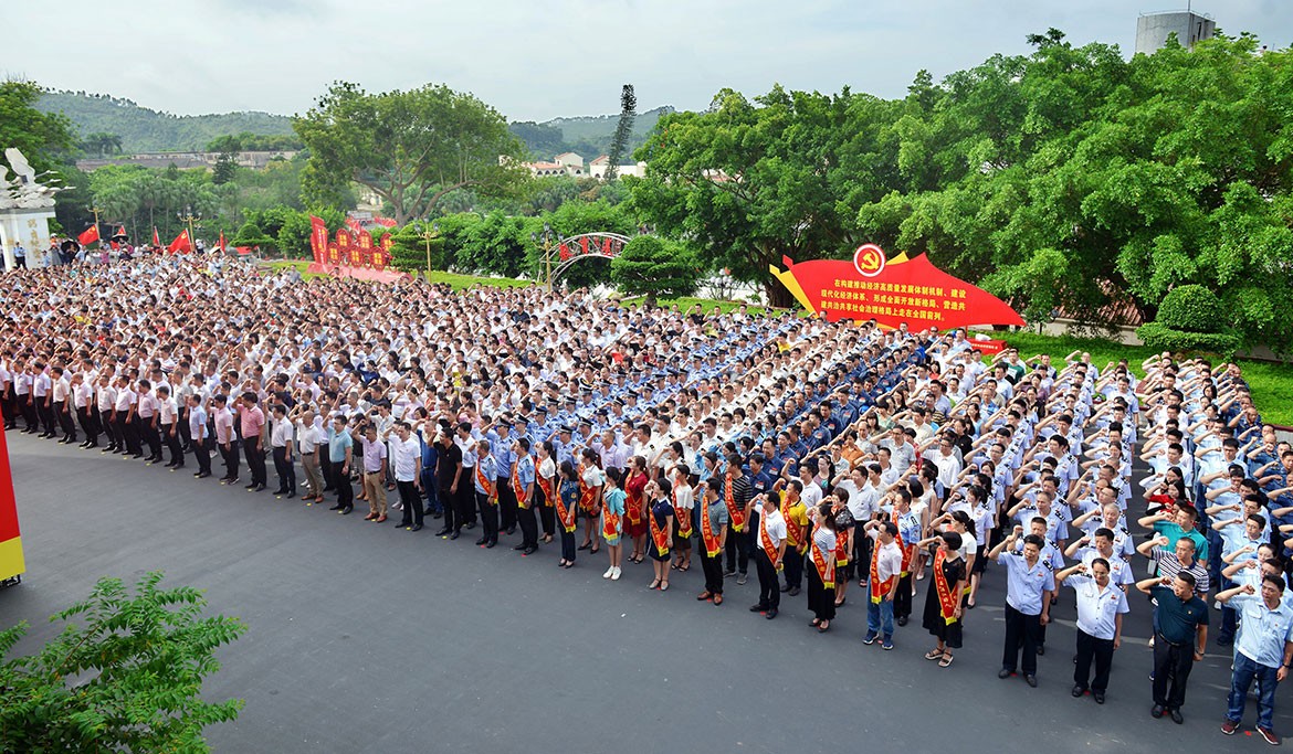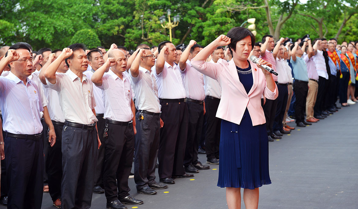 有1200多名黨員參與了重溫入黨誓詞,由湛江市直屬機(jī)關(guān)工委書記陳瑞群領(lǐng)誓,黨員們精神激昂,宣誓聲音整齊、雄亮、激動。