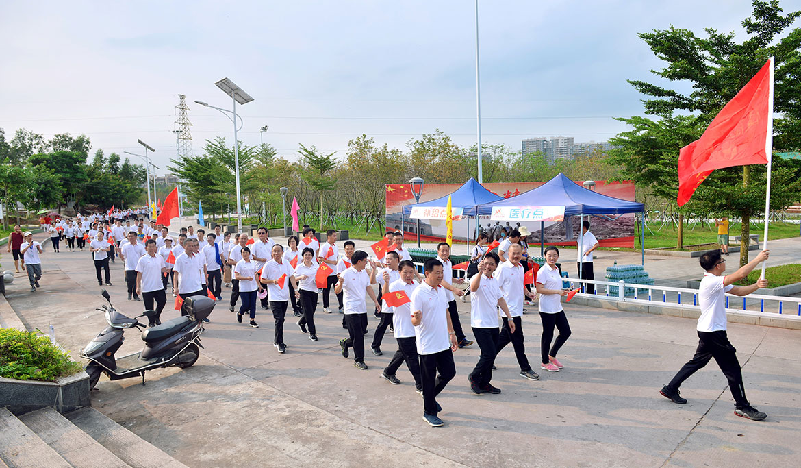 啟動儀式結(jié)束后,全體人員環(huán)繞市櫻花公園進行了約3公里的徏步運動。徏步沿線紅色主題宣傳氛圍濃厚,設(shè)置黨建、創(chuàng)文、旅游、體育等宣傳牌,展示紅船精神、井岡山精神、延安精神、西柏坡精神、黨建及創(chuàng)文宣傳以及黨的光輝歷程和長征線路圖、“一帶一路”的描繪圖等,引導全市黨員干部和廣大群眾體驗學習紅色歷史,追尋紅色記憶,傳承紅色基因。