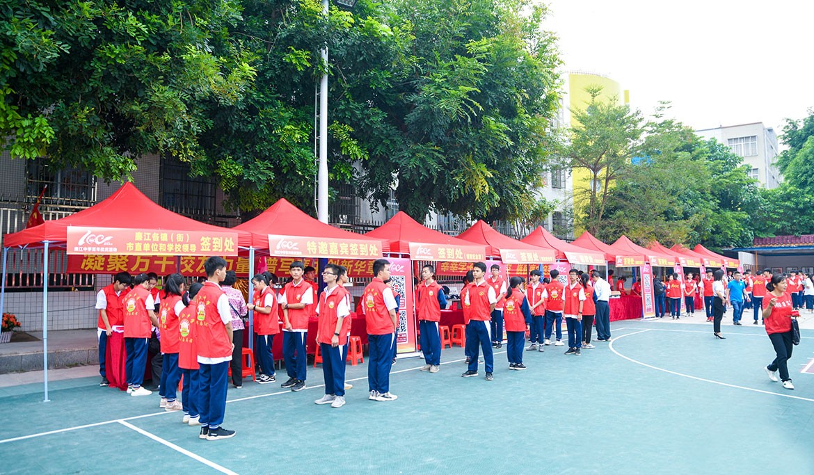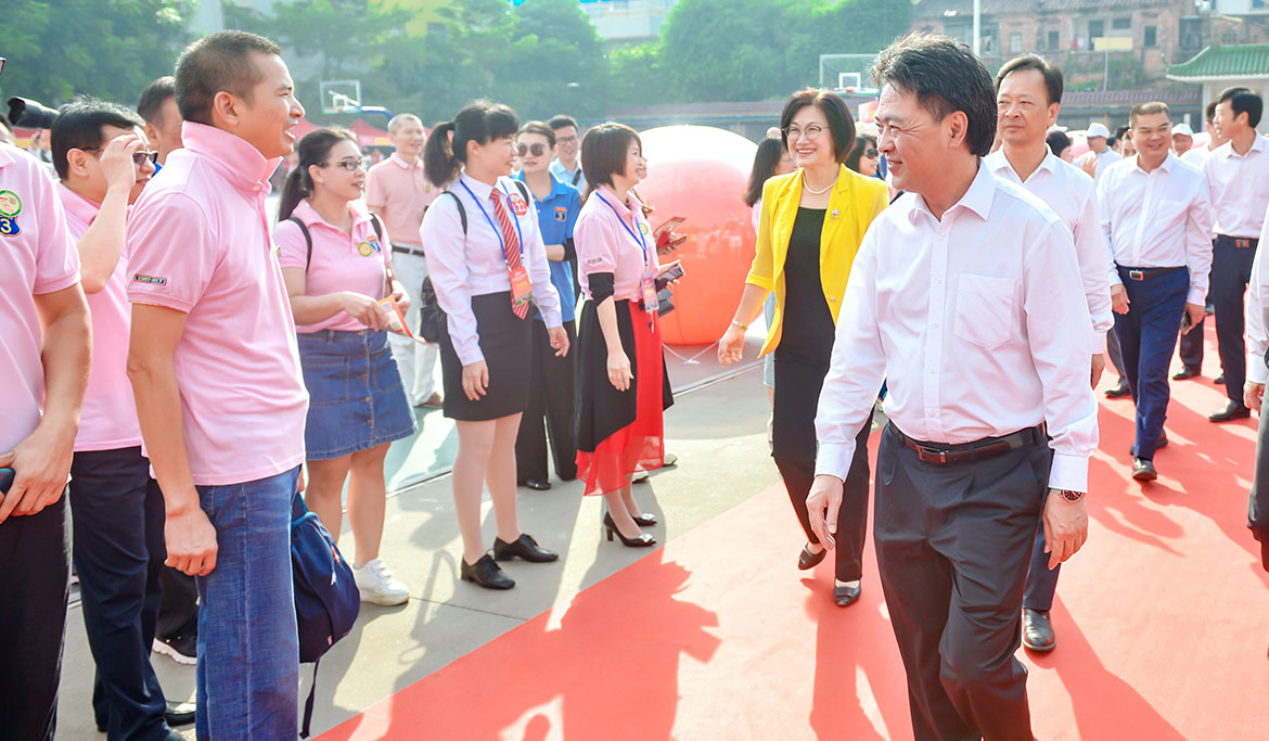 慶祝大會(huì)開(kāi)始,省工業(yè)和信息化廳廳長(zhǎng)涂高坤,湛江市副市長(zhǎng)崔青,我市市委書(shū)記林海武,市委副書(shū)記、市長(zhǎng)龐曉冬,市人大常委會(huì)黨組書(shū)記、主任李世東,市政協(xié)主席吳永光等市四套班子領(lǐng)導(dǎo)以及省內(nèi)兄弟學(xué)校,市直相關(guān)單位、各鎮(zhèn)(街),市總商會(huì)、各地商會(huì)、協(xié)會(huì)、香港同鄉(xiāng)會(huì)的領(lǐng)導(dǎo)及各屆校友代表,社會(huì)各界熱心人士、離退休校長(zhǎng)、老師代表、在校師生等近萬(wàn)人參加盛會(huì)。