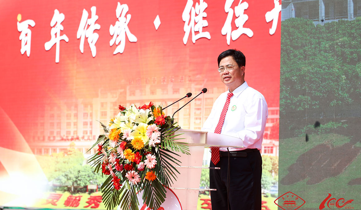 校友、省工業(yè)和信息化廳廳長(zhǎng)涂高坤宣讀教育廳發(fā)給廉江中學(xué)百年校慶的賀信