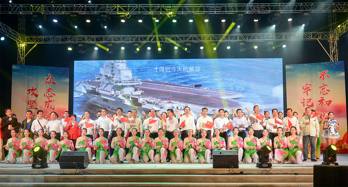 晚會在涯歌《涯在水鄉(xiāng)等你來》中精彩啟幕,圍繞“不忘初心、牢記使命”主題教育,三個鎮(zhèn)精心編排的12個各具地方特色的節(jié)目輪流上演,緊扣“不忘初心、牢記使命”主題教育,謳歌三鎮(zhèn)在各級黨委政府的領(lǐng)導(dǎo)下取得的光輝業(yè)績,體現(xiàn)了三鎮(zhèn)開展“不忘初心、牢記使命”主題教育工作,表達了對黨的無比熱愛,對偉大祖國的深情祝福。晚會最后在全體人員一起高歌《歌唱祖國》的歌聲中落下帷幕。