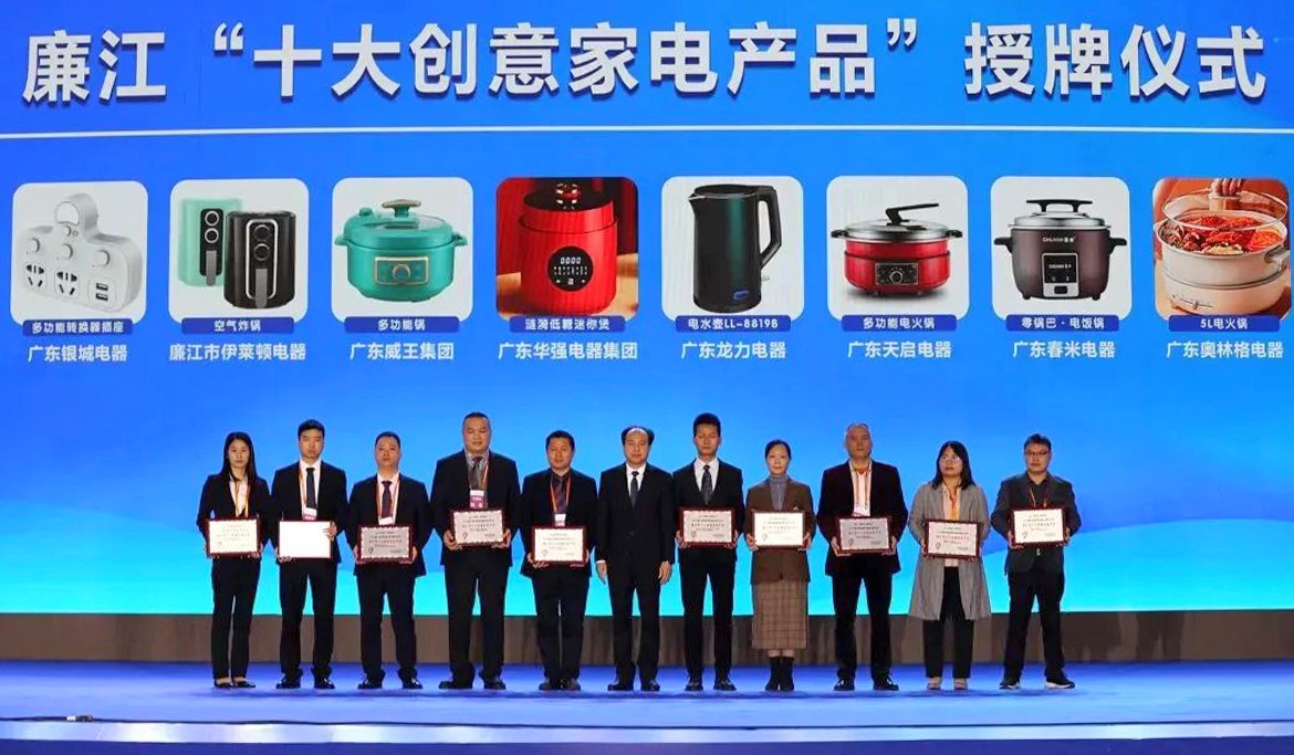 柯俊宣布“廉江家電”小程序正式上線發(fā)布;陳煒飛為獲得廉江“十大創(chuàng)意家電產(chǎn)品”的企業(yè)代表頒發(fā)牌匾;吳永光為廉江電飯鍋、電水壺優(yōu)品企業(yè)代表頒發(fā)證書。