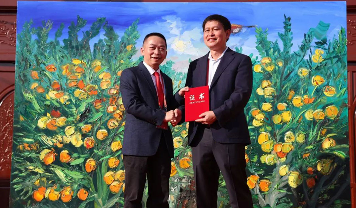 在開(kāi)幕式上,周昌新還將“重彩繪橙園 文化興鄉(xiāng)村”廉江紅橙園現(xiàn)場(chǎng)創(chuàng)作的作品《廉江紅》,捐贈(zèng)給廉江市博物館收藏,柯俊代表廉江市政府接受捐贈(zèng),并為周昌新頒發(fā)捐贈(zèng)證書(shū)。