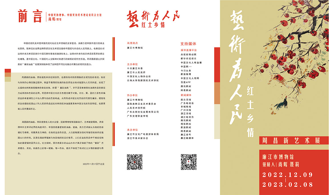 12月9日下午,“中國(guó)民間文化藝術(shù)之鄉(xiāng)”廉江喜迎文化盛事,由廉江市委、市政府,國(guó)際奧林匹克藝術(shù)委員會(huì),北京文化發(fā)展基金會(huì)周昌新藝術(shù)基金,中華文化人物雜志社,人民藝術(shù)創(chuàng)作院,云南大學(xué)昌新國(guó)際藝術(shù)學(xué)院,湛江市美術(shù)家協(xié)會(huì)共同主辦的“藝術(shù)為人民·紅土鄉(xiāng)情”周昌新藝術(shù)展,在廉江市博物館隆重開(kāi)幕。