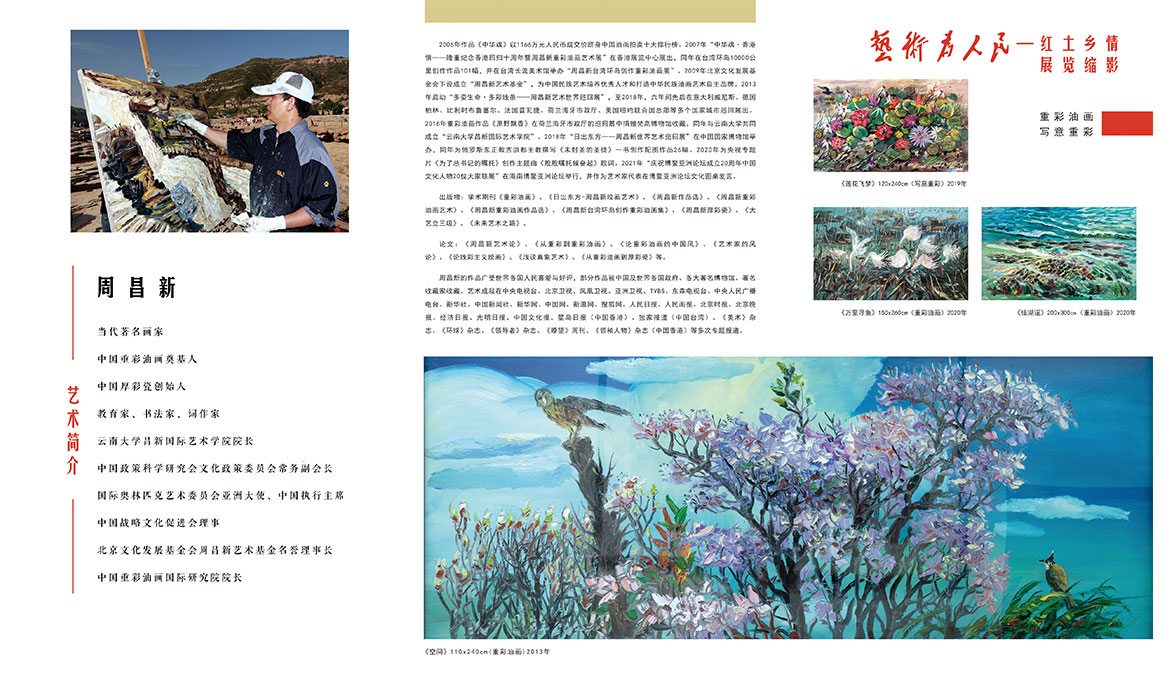 據(jù)了解,周昌新是中國(guó)當(dāng)代著名畫(huà)家、中國(guó)重彩油畫(huà)奠基人、中國(guó)厚彩瓷創(chuàng)始人,畫(huà)風(fēng)淳樸、題材廣泛、主題深刻、關(guān)注民生,被授予“世界杰出華人藝術(shù)家”“國(guó)際藝術(shù)家”等榮譽(yù)。“藝術(shù)為人民·紅土鄉(xiāng)情”周昌新藝術(shù)展展出周昌新的珍貴畫(huà)作25幅,展出時(shí)間持續(xù)到明年初。藝術(shù)展的舉辦為2022廉江家電博覽會(huì)暨紅橙文化節(jié)增光添彩,同時(shí),為廉江市民奉上一場(chǎng)豐盛的文化盛宴,使廉江市民能夠近距離領(lǐng)略重彩油畫(huà)的藝術(shù)魅力。