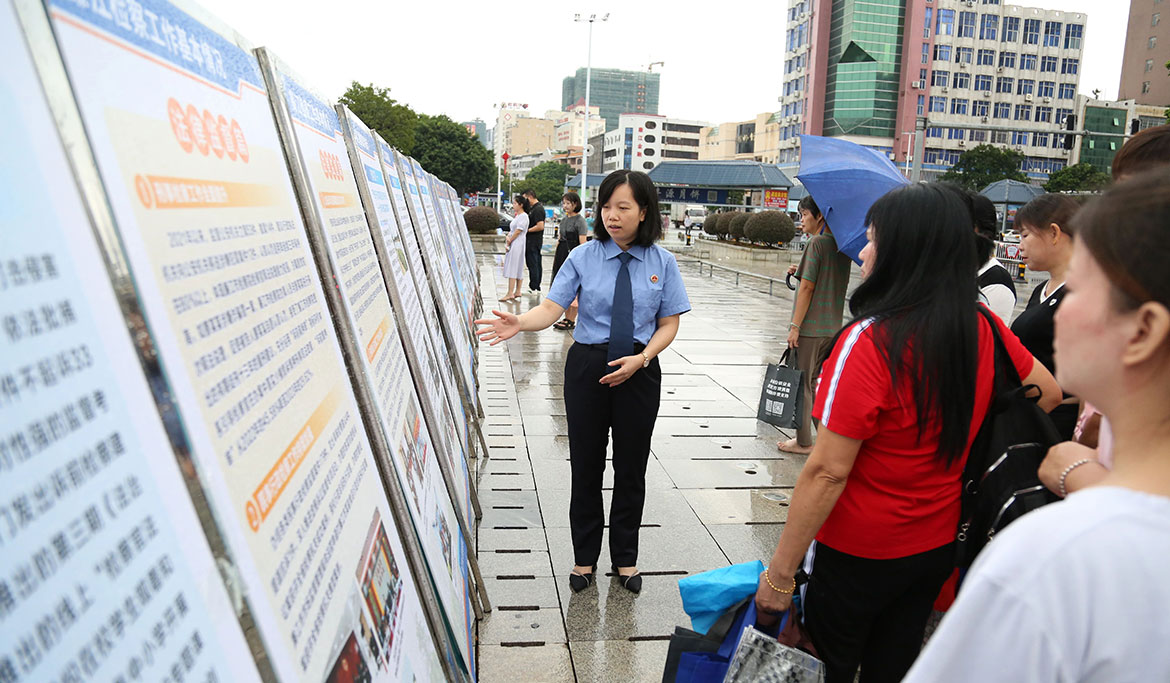 活動(dòng)現(xiàn)場(chǎng)設(shè)置“平安建設(shè)成果展區(qū)”和“政法宣傳”攤位,全方位多角度地展示了政法工作風(fēng)貌及工作成果,各單位在宣傳攤位上開(kāi)展著普法、禁毒、反詐等宣傳。