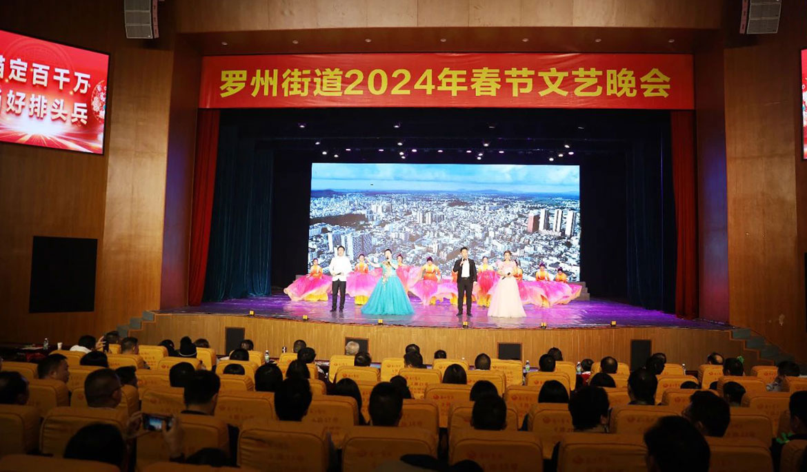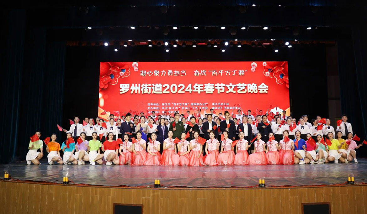 羅州街道春節(jié)文藝晚會(huì)由市“百千萬工程”指揮部辦公室、市總工會(huì)指導(dǎo),羅州街道黨工委、羅州街道辦事處主辦,市文化館協(xié)辦,廣東眾利文化發(fā)展有限公司承辦。一共分為六個(gè)篇章,包括《爭先之態(tài)·推動(dòng)商貿(mào)服務(wù)業(yè)提質(zhì)》《比超之勢(shì)·推動(dòng)工業(yè)提質(zhì)》《攻堅(jiān)之力·推動(dòng)城市建設(shè)提質(zhì)》《為民之心·推動(dòng)公共服務(wù)提質(zhì)》《聚力之行·推動(dòng)社會(huì)治理提質(zhì)》《創(chuàng)新之舉·推動(dòng)黨建提質(zhì)》。晚會(huì)主題鮮明,藝術(shù)形式豐富多彩,格調(diào)高雅,令人振奮,在大型歌舞《再一次出發(fā)》中拉開帷幕,朗誦《奮進(jìn)羅州 筑夢(mèng)未來》、小戲《茶香情》、快板《“百千萬工程”譜新篇》、小品《干部進(jìn)網(wǎng)格》、廣場舞《橙鄉(xiāng)笠影》,一個(gè)個(gè)精彩的節(jié)目接連上演,現(xiàn)場高潮迭起,觀眾掌聲陣陣,充分展示羅州街道認(rèn)真貫徹落實(shí)黨的二十大精神、習(xí)近平總書記視察廣東重要講話、重要指示精神,認(rèn)真貫徹落實(shí)省委、湛江市委和廉江市委工作部署,在“百千萬工程”開局之年取得了良好工作成效,生動(dòng)彰顯了羅州街道干部群眾勇于擔(dān)當(dāng)、主動(dòng)作為、競標(biāo)爭先、比學(xué)趕超的精神風(fēng)貌。