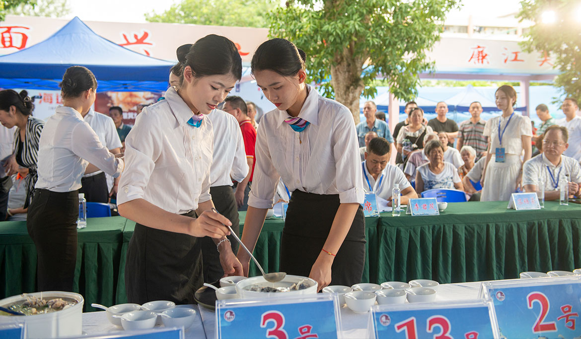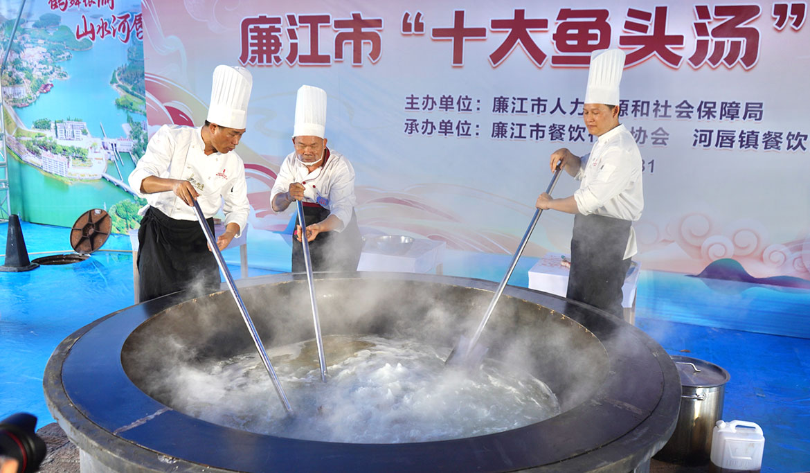 近年來,廉江市委市政府高度重視“魚頭湯”美食名片的打造,依托河唇鎮(zhèn)“鶴舞銀湖,山水河唇”鄉(xiāng)村振興連片連線特色示范帶的建設(shè),全新打造魚頭湯特色美食街這條集非遺美食、文化體驗、旅游融合為一體的“美食地標(biāo)”街區(qū),推動“魚頭湯制作技藝”成功入選縣級非物質(zhì)文化遺產(chǎn)名錄。2021年,河唇魚頭湯在“廉江市十大美食”評比中勝出,成為廉江的一張美食“名片”。