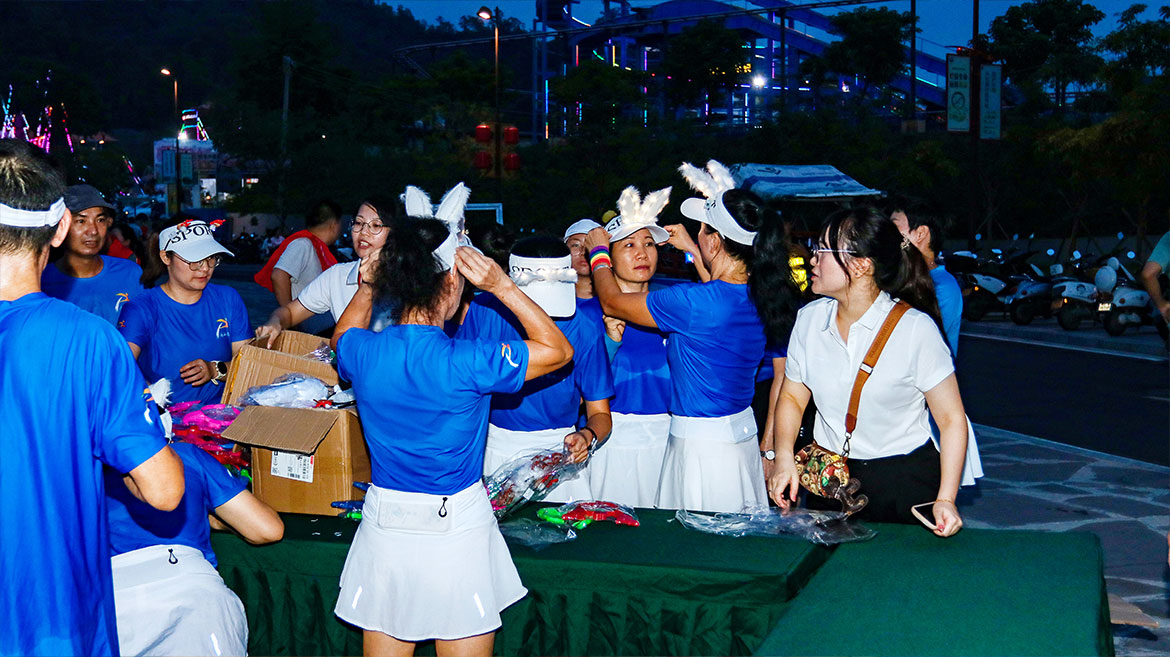 當晚,組委會貼心地為各參賽者準備了“熒光大禮包”,參賽選手領(lǐng)取裝備后,紛紛“裝扮”起自己,星星點點的光影成為夜跑中一道靚麗的風景線。