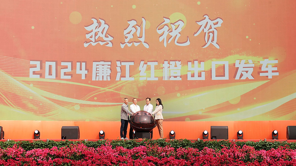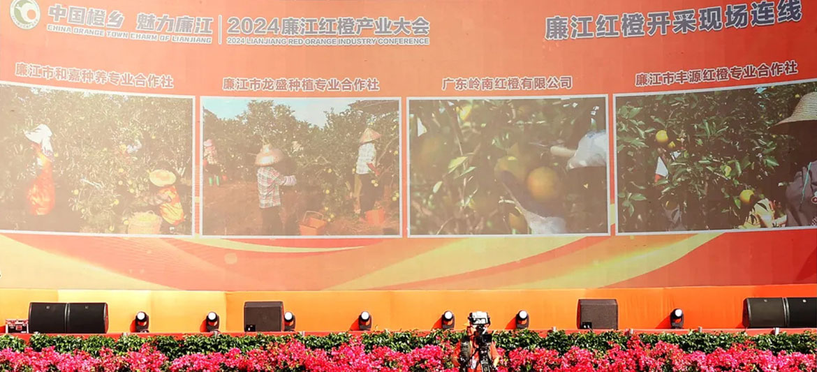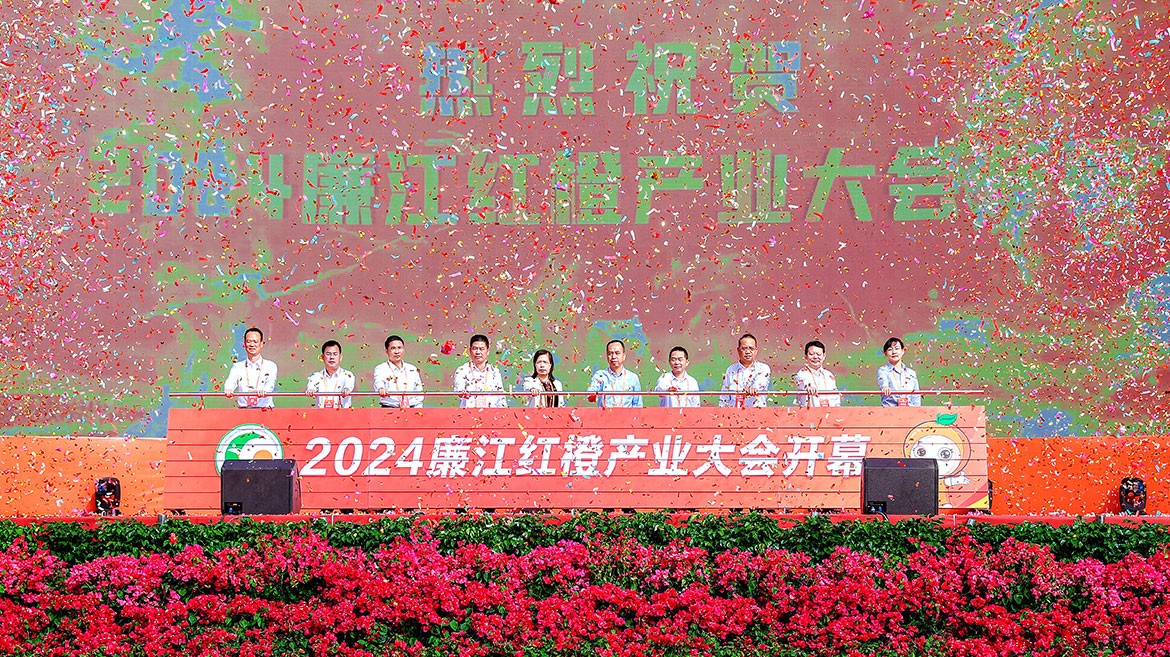 省統(tǒng)計局二級巡視員陸小環(huán),省農(nóng)業(yè)農(nóng)村廳總經(jīng)濟(jì)師、一級調(diào)研員鄭志雄,廉江市委書記陳恩才,市委副書記、市長柯俊,嶺南師范學(xué)院黨委副書記林曉敏,湛江市委副秘書長、市委保密委專職副主任凌漢,湛江市政府副秘書長冼戈,廣東省外語藝術(shù)職業(yè)學(xué)院黨委委員、副校長郝勇,湛江市農(nóng)業(yè)農(nóng)村局局長莫植貴,中國農(nóng)產(chǎn)品流通經(jīng)紀(jì)人協(xié)會副會長、秘書長李葭為2024廉江紅橙產(chǎn)業(yè)大會開幕推桿。