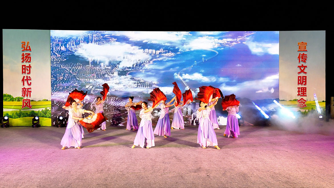 隨著啟動球的點(diǎn)亮,廉江、陸川“新民俗?新風(fēng)尚”移風(fēng)易俗新時(shí)代文明實(shí)踐共建活動正式拉開帷幕。悠揚(yáng)動人的歌曲《文明之花》唱出了新時(shí)代的風(fēng)貌;陸川縣帶來獨(dú)具地方特色的啀戲非遺表演《無“禮”取鬧》《山鄉(xiāng)蝶變》《風(fēng)雪屋檐下》……以幽默詼諧的方式傳遞了文明新風(fēng);翩翩起舞的舞蹈《萬疆》展現(xiàn)了華夏大地的壯麗與輝煌;深情并茂的朗誦《九州江畔的文明交響》訴說著兩地文明的和諧共鳴……