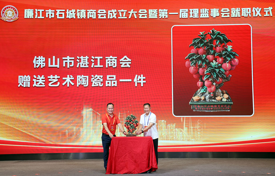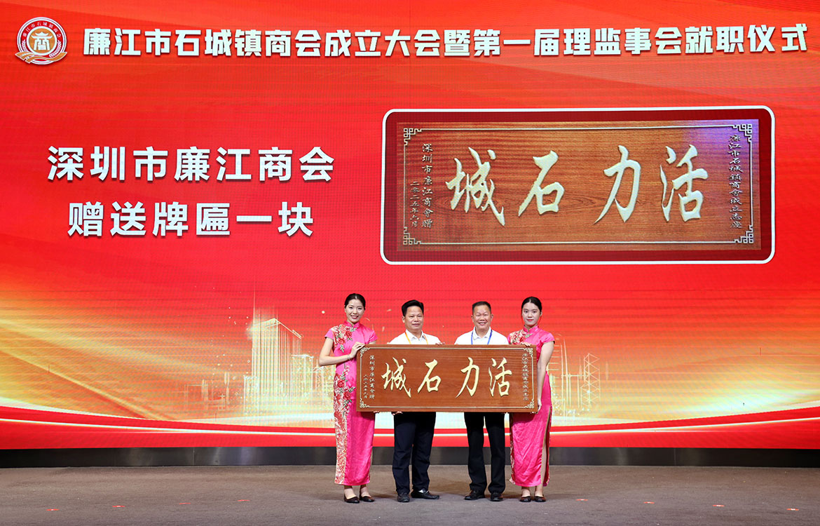兄弟商會深圳市廉江商會、佛山市湛江商會、深圳市廉江石城商會、東莞廉江商會長安分會、廉江市羅州街道商會、廉江市城北街道商會、廉江市城南街道商會、廉江市吉水鎮(zhèn)商會、廉江市石頸鎮(zhèn)商會,為慶祝廉江市石城鎮(zhèn)商會成立分別贈送了紀(jì)念品。