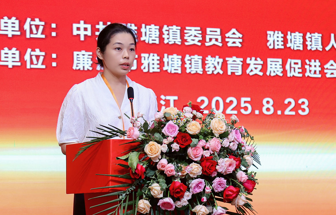 韓陽向長期以來關(guān)心支持我市教育事業(yè)發(fā)展的各界人士表示感謝,向獲得表彰的師生們表示祝賀。韓陽指出,教育是民族振興和社會(huì)進(jìn)步的重要基石,雅塘鎮(zhèn)教育促進(jìn)會(huì)自成立以來,為雅塘鎮(zhèn)的教育事業(yè)發(fā)展注入了新的活力,也營造了尊師重教的良好風(fēng)尚。她希望獲獎(jiǎng)的教師進(jìn)一步落實(shí)好立德樹人的根本任務(wù),培養(yǎng)更多優(yōu)秀學(xué)子,辦好人民滿意的教育;希望獲獎(jiǎng)的學(xué)生志存高遠(yuǎn)、勤奮學(xué)習(xí),將來用知識(shí)和智慧努力回報(bào)家鄉(xiāng)、報(bào)效祖國。