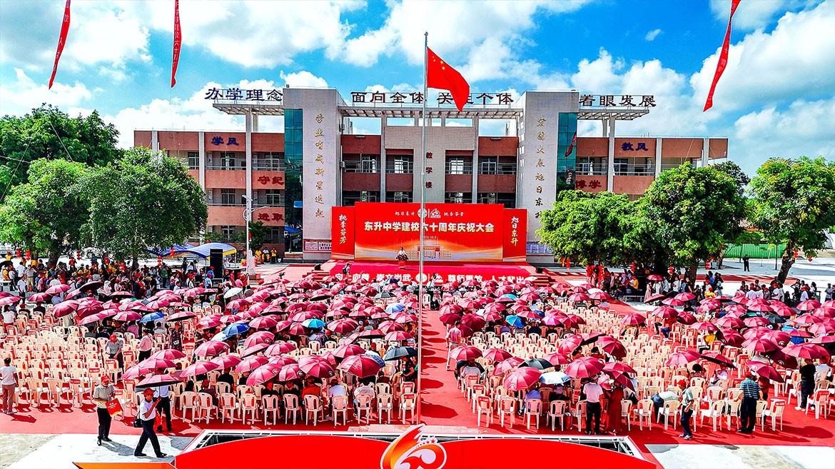 10月3日,廉江石嶺鎮(zhèn)東升中學(xué)校園喜慶氛圍濃厚,該校建校60周年慶祝大會在此舉行,眾多師生、校友與各界嘉賓齊聚共赴校慶。